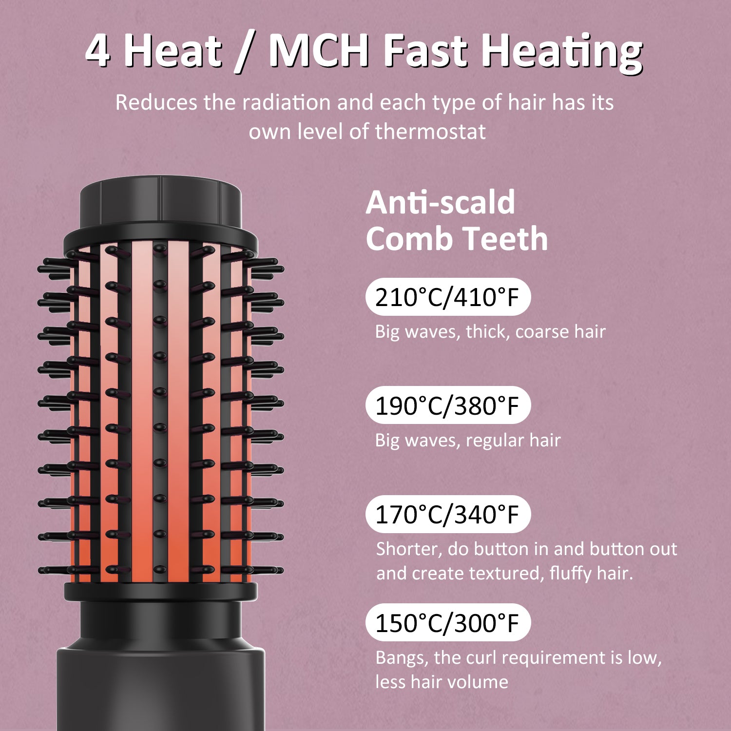 3 in 1 Heated Hair Brush Styler: It can be used as a heated curling brush or hot comb volumiser brush to give your hair an inner and outer button perm, curling perm and head fluffing, and it can also be used as a straightener brush to make your dry and frizzy hair become more shiny and smoother.