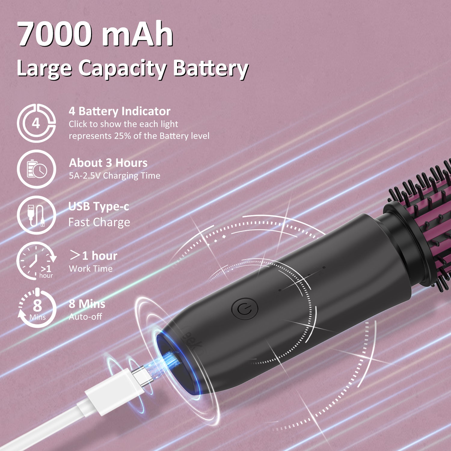 4 Adjustable Temperatures and Fast Heating: You can select the appropriate temperature of this cordless curling iron brush in accordance with the volume and texture of your hair as well as the styling you want to achieve. It heats up quickly and distributes heat evenly, so as to take good care of your hair.