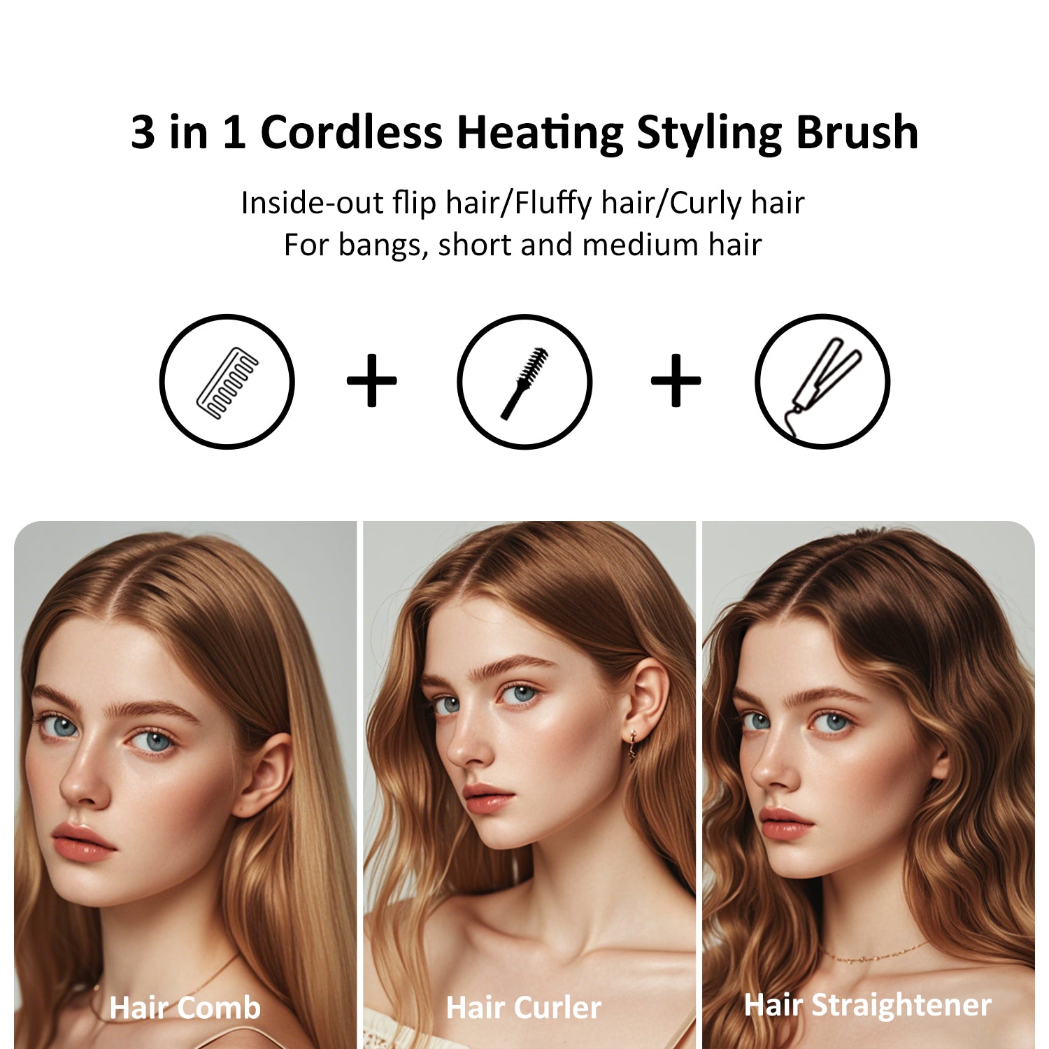Cordless and Portable Design: The cordless design of this heated hair brush means you can style your hair without an outlet. It's the perfect option for styling quickly. Only 0.46LB, compact size and light weight, you can take it with you wherever you want to go.
