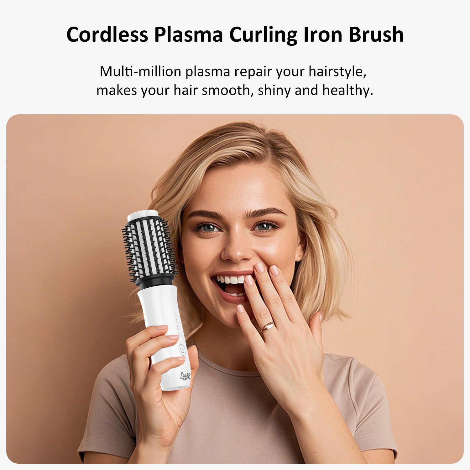 Leeko Cordless Heated Hair Curling Brush, 3 in 1 Hot Hair Brush 40mm, Portable Heated Hair Curler and Straightener Brush with 4 Temperatures,7000 mAh USB Rechargeable Heated Hair Brush Styler