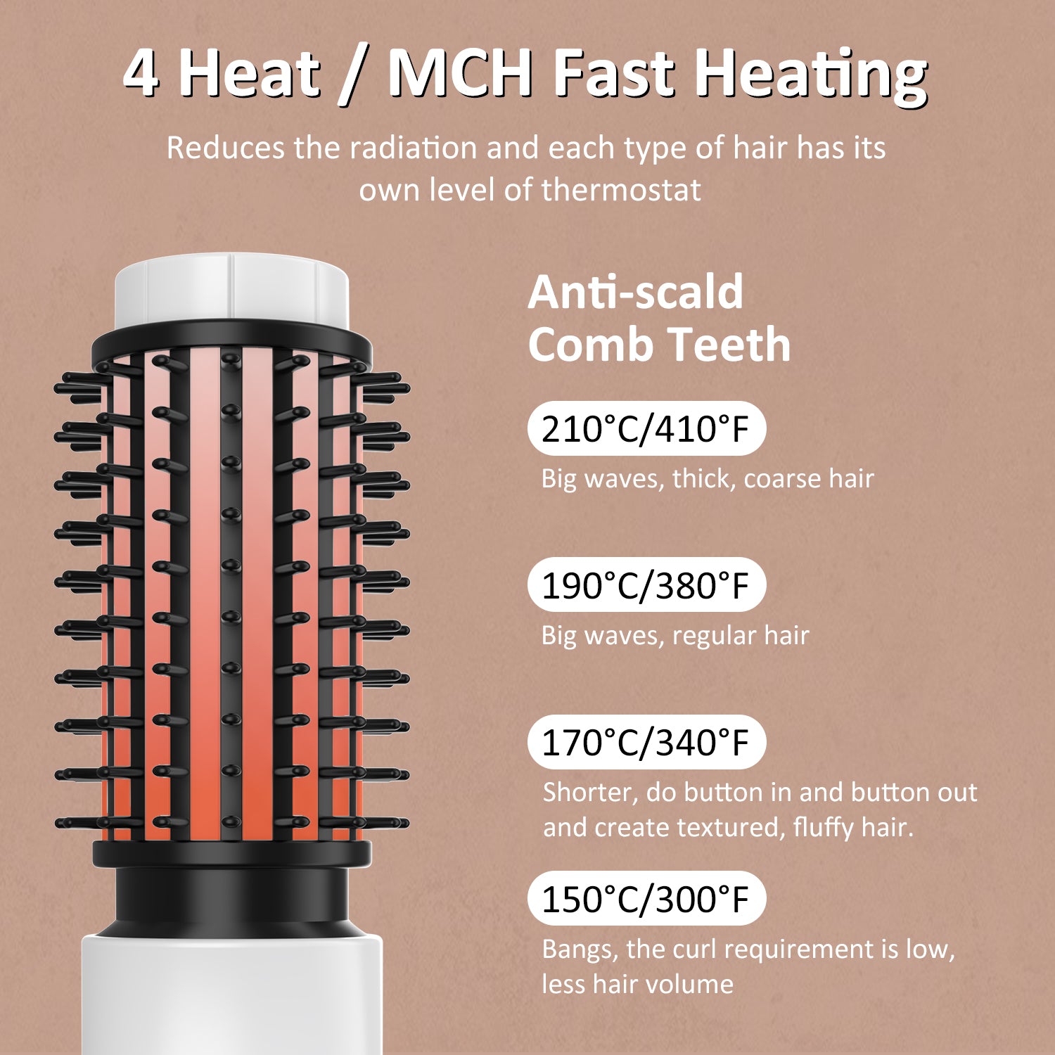 3 in 1 Heated Hair Brush Styler: It can be used as a heated curling brush or hot comb volumiser brush to give your hair an inner and outer button perm, curling perm and head fluffing, and it can also be used as a straightener brush to make your dry and frizzy hair become more shiny and smoother.